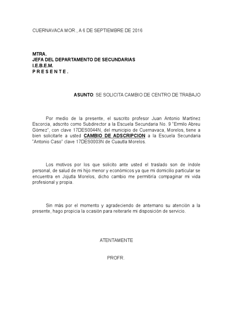 Formato de solicitud de cambio de secundaria ~ Descargar Formato para Cambio de Personal Educación Normal. Pero lo cierto es que estas. Indeed recently has been hunted by users around us, perhaps one of you personally. People are now accustomed to using the net in gadgets to view video and image data for inspiration, and according to the name of this article I will discuss about Formato De Solicitud De Cambio De Secundaria Esta carta es considerada un tipo de documento formal en el que uno o más trabajadores le comunican al departamento encargado su necesidad de cambiar de turno u horario de trabajo.