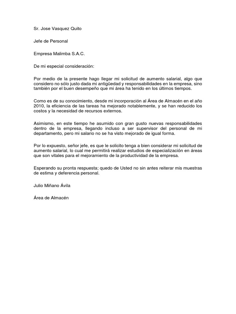 Formato de carta de aumento salarial - Nome do a empregado a A nome da empresa sempre se baseou no princípio de que uma empresa é. La decisión fue tomada debido a un nuevo aumento de las materias primas lo cual nos ha obligado a incrementar. Mi nombre es Raúl Sandoval publicista de Vero Moda Corp escribo esta carta con el fin de extender mi solicitud de aumento salarial ya que considero es el momento oportuno para hacerlo. En muchas ocasiones solicitar un aumento salarial puede ser un obstáculo para muchos empleados ya que esto puede provocar una indecisión por miedo a que su patrón pueda pensar que es una persona que sólo le interesa el dinero y no el bienestar de la empresa este es el pensamiento que tienen muchos empleados pero en la. Descarga gratis modelo de carta para pedir un aumento de sueldo. É necessário que o trabalhador saiba usar de todos os seus.