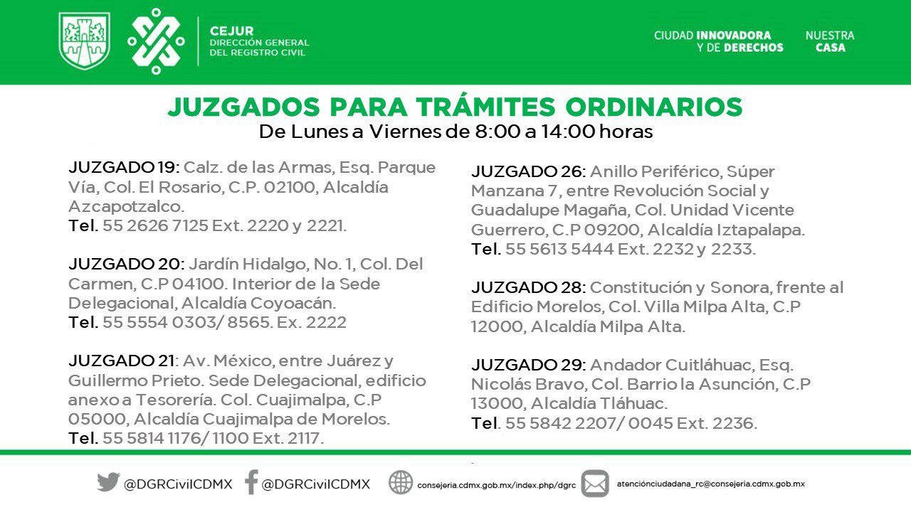 51 rows El registro civil de DF pone a disposición sus ciudadanos las siguientes oficialias. Aquí encontrará información útil sobre cómo obtener su acta certificada de nacimiento matrimonio divorcio o defunción en México ya sea por Internet o presencialmente. El trámite es gratuito en el juzgado. De Las Armas SN Azcapotzalco Prados Del Rosario Ciudad de México. 02070 Ver mapa - Cada novio debe llevar 1 acta de nacimiento original que haya sido expedida el mismo año y 2 copias. Para realizar un juicio de nulidad de acta de nacimiento en CDMX debes acudir a un juzgado familiar en CDMX donde un juez emitira sentencia para eliminar el error.