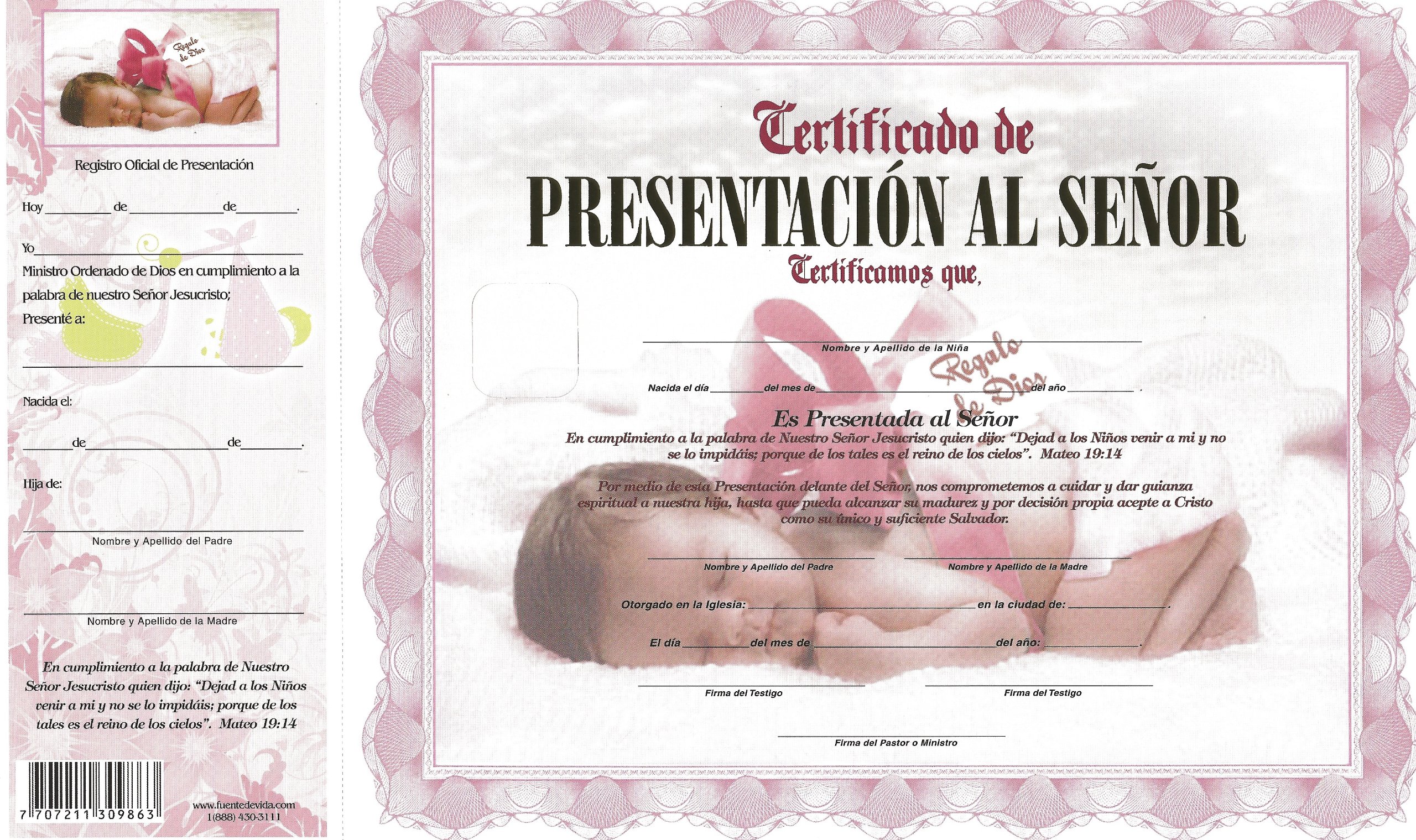 Certificados a todo color para ese día especial cuando se presenta al bebé delante de la iglesia. Certificados de Presentacion de Ninos Spanish Edition Pack of 12 Paperback November 1 2008. See more ideas about cert certificate templates certificate. Certificados de presentación de niños. DESCARGA DIRECTA AQUÍ DESCARGA DIRECTA AQUÍ PUEDES VISUALIZARLOS Y DESCARGARLOS AQUI LO EDITAMOS POR TI Si te interesa podemos editar el certificado por ti con el logo de tu iglesia datos si lo requiere código QR que envíe a su página Web etc te lo. Certificados de presentacion de niños gratis - Imagui.
