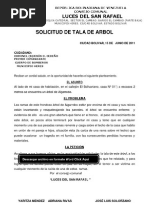 Ejemplo de solicitud para cortar un arbol - 1- Reúna los antecedentes requeridos. Su petición deberá. Modelo De Carta Para Pedir Descuento En El Colegio Las. Fotografías planos o informes que demuestren que la tala es aconsejable. Es el permiso o autorización que otorga la CAR para aprovechar talar trasplantar árboles aislados de bosque natural o plantado localizados en terrenos de dominio público o en predios de propiedad privada que se encuentren caídos o muertos por causas naturales o que por razones de orden. CEDEO PRIMER COMANDANTE CUERPO DE BOMBEROS MUNICIPIO HERES.
