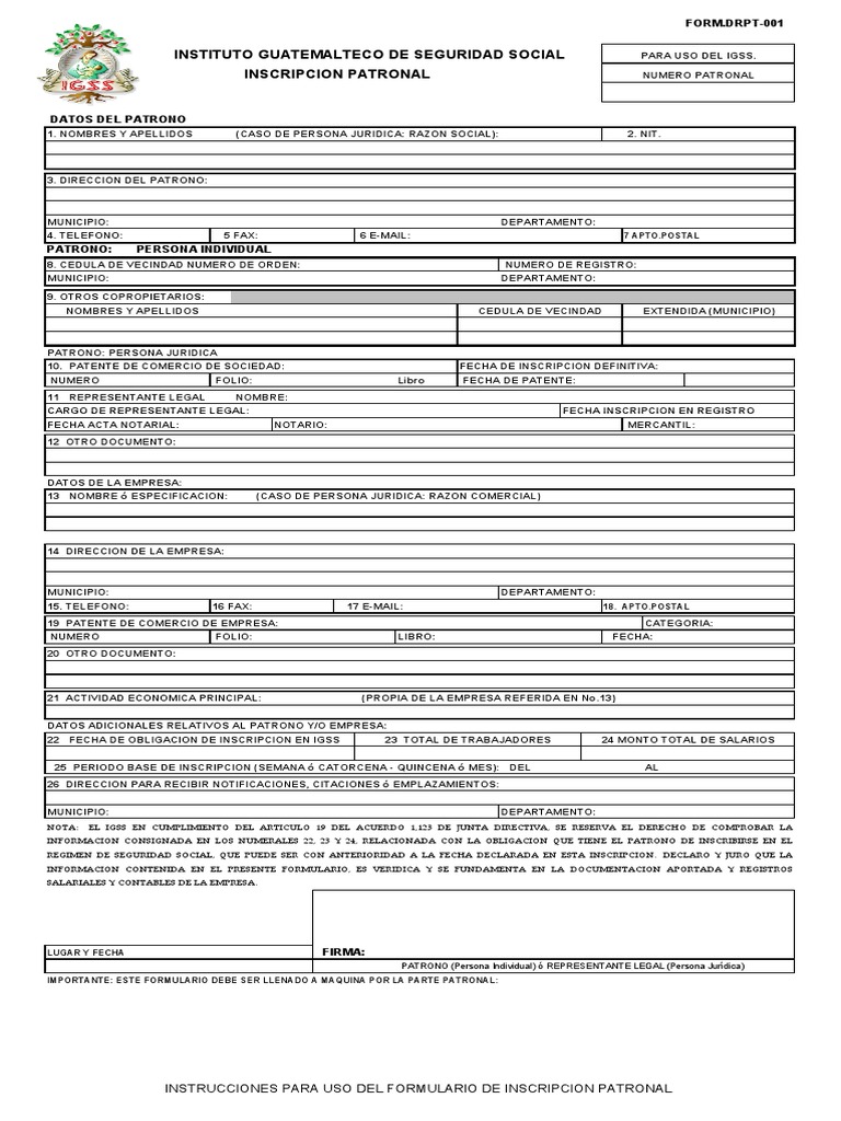 Formato de inscripcion patronal ~ Por otra parte el registro patronal de empresas determinará a cada patrón un documento de identificación personal con los datos del número de registro nombre actividad clase fracción domicilio etcétera. Este formato deberá ser firmado por el patrón al momento de realizar el trámite y en la presencia de. Indeed recently is being searched by users around us, maybe one of you. Individuals now are accustomed to using the internet in gadgets to view image and video data for inspiration, and according to the title of this article I will discuss about Formato De Inscripcion Patronal De acuerdo al DECRETO N 8304 del 27 de diciembre de 2017.