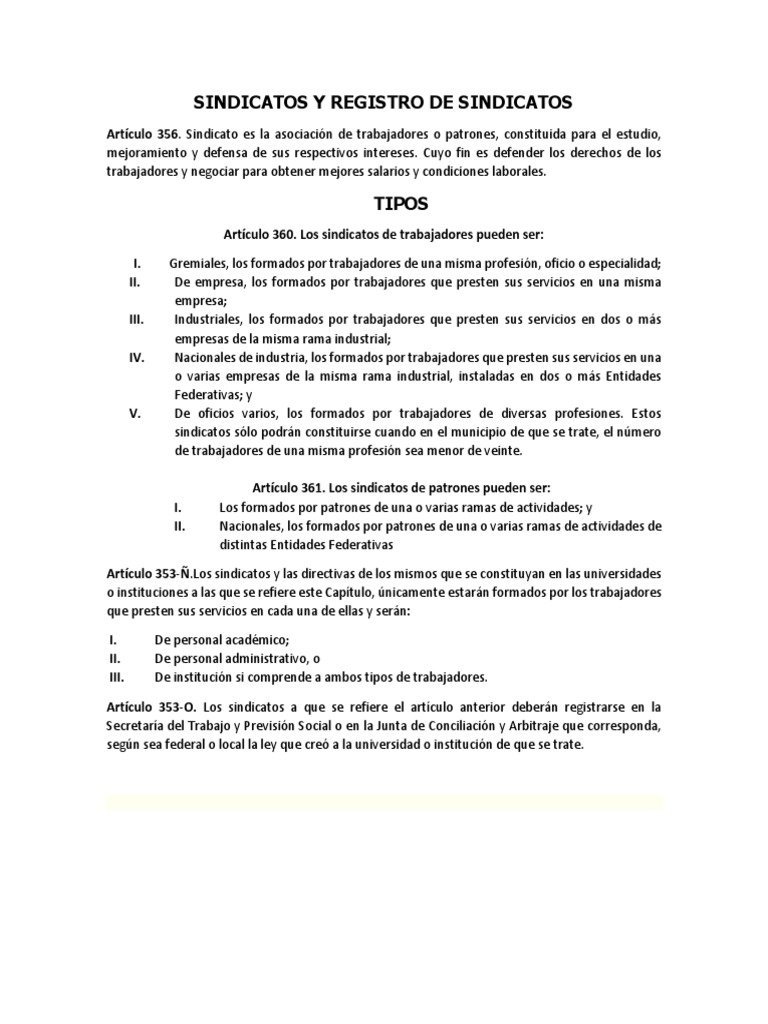 Fecha de inscribirse en el Registro respectivo los Sindicatos se constituyen por la decisión de sus afiliados. Solicitud de Registro Sindical. La cancelación del registro de un sindicato solo procede en los casos taxativamente establecidos en la ley. GRAL DE REGISTRO DE ASOCIACIONES PRESENTE. Una lista con el número nombres y domicilios de los miembros del Sindicato y con el nombre y domicilio de los patrones empresas o establecimiento en los que se prestan los servicios. Un sindicato es una organización de trabajadores formada para proteger los derechos y promover los intereses de sus miembros en lo que respecta al salario las prestaciones y las condiciones de trabajo.