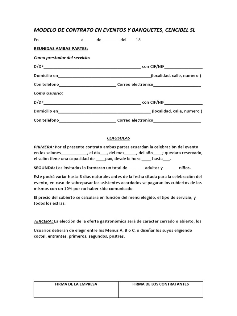 Contrato Para Eventos Y Banquetes Word. 53 15 53 encontró este documento útil 15 votos 5K vistas 3 páginas. Your Contrato para eventos y banquetes word picture are ready in this website. Contrato para eventos y banquetes word are a topic that is being searched for and liked by netizens today. You can Find and Download or bookmark the Contrato para eventos y banquetes word files here