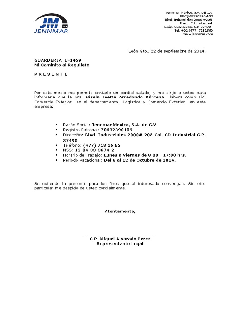 En la carta tienes que incluir los siguientes datos. 30 de Noviembre de 20012. Modelo de carta de despido. Es el documento mediante el cual este Instituto Mexicano del Seguro Social en su carácter de organismo fiscal autónomo hace del conocimiento de los patrones y demás sujetos obligados requeridos del pago de cuotas obrero patronales de. COPIA DE ALTA PATRONAL ANTE EL IMSS. Ejemplo de Carta Patronal.
